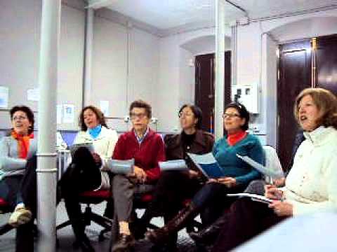 Grupo de alumnas vocalizando las letras del abecedario.